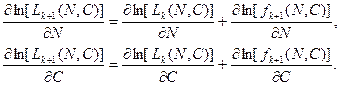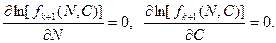 Прологарифмируем (33) и возьмем частные производные по параметрам