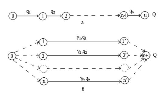 Рис.40. Последовательная (а) и параллельная (б) информационные цепи.