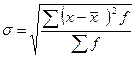3. Среднее квадратическое отклонение. Модуль считается математической условностью, поэтому, для того чтобы отклонения стали положительными их возводят в квадрат, а затем извлекают квадратный корень. Обозначается этот показатель малой строчной греческой буквой сигма (σ), для взвешенных отклонений формула имеет вид: