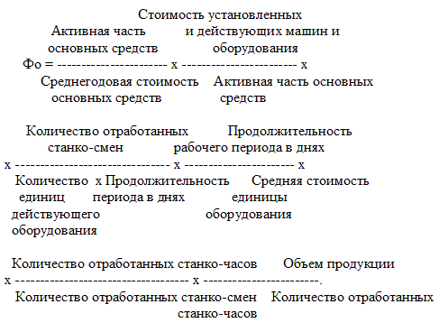 Влияние экстенсивных и интенсивных факторов на использование основных средств определяется по следующей формуле расчета:
