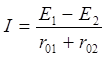 Е1 - Е2 = Ir01 + Ir02, E1= Ir01+ U, - E2 = Ir02 - U,