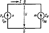 Рис. 1.12. Схема неразветвленной электрической цепи с двумя источниками ЭДС