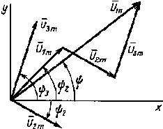 Сумму u = u1 + u2 + u3 напряжений можно определить путем сложения векторов их амплитуд (рис. 2.5)