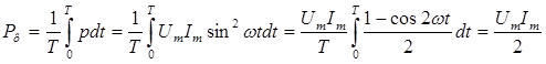Из выражения (2.4) вытекает, что среднее значение мощности есть электрическая мощность, которая преобразуется в активном сопротивлении в теплоту. Такую мощность называют активной и обозначают символом Р.