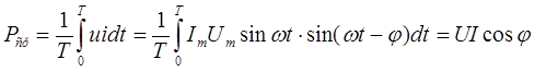 р = ui = Im sin ωt Um sin (ωt - φ).