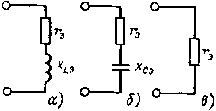 Рис. 2.12. Эквивалентные схемы цепи, изображенной на рис. 2.11, а: а - хL > хС; б - хС > xL; в - хL = хС