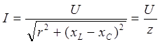 Последнее выражение представляет собой закон Ома для последовательной цепи r, L, С: