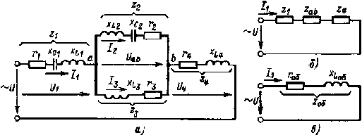 В результате цепь может быть преобразована в эквивалентную, изображенную на рис. 2.25, б, где сопротивления Z2, Zab и Z4 включены последовательно.