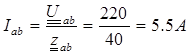 Zab = 40 Ом, Zbc = 17,3 + j10 Ом, Zca = 8,65 - j5 Ом.