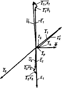 в которых j I 1 x 1 = - Ē р1 и j I 2 x 2 = - Е р2, где x 1 и х 2 - индуктивные сопротивления первичной и вторичной обмоток, обусловленные потоками рассеяния.