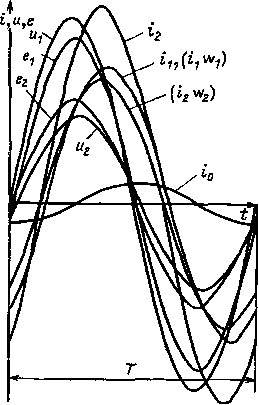 Рис. 8.12. Графики (осциллограммы) мгновенных значений токов и напряжений трансформатора