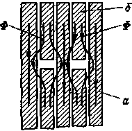 Рис. 8.26. Расположение линий магнитного потока в месте стыка пластин магнитопровода