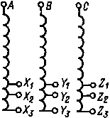 Рис. 8.30. К пояснению изменения коэффициента трансформации трехфазного трансформатора