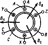 | Рис 10 10. К пояснению образования вращающегося магнитного поля двухполюсного асинхронного двигателя |