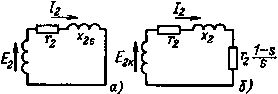 Рис. 10.15. Реальная ( а ) и эквивалентная ( б ) схемы фазы обмотки ротора ( б )