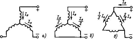 Рис 10.31. Схемы соединения обмоток статора при динамическом торможении