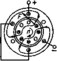 Для получения режима динамического торможения обмотку статора отключают от сети трехфазного тока и подключают на время торможения к источнику энергии постоянного тока по одной из схем, изображенных на рис. 10.31, а — в. Постоянный ток создает неподвижное в пространстве магнитное поле, картина которого для схемы рис. 10.31, а двухполюсного двигателя изображена на рис. 10.32.