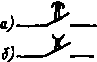| Контакты и вспомогательные контакты контактора, пускателя, реле: а) замыкающий б) размыкающий |
