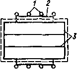 Система состоит из труб 1, забитых в землю, стальной полосы 2, соединяющей трубы между собой и с контуром заземления 3. Стальные полосы контура заземления прокладываются по стенам зданий или в кабельных каналах, они должны иметь сечение не менее 48 мм2, а все соединения обязательно должны быть сварными. К заземляющему (зануляющему) контуру 3 с помощью стальных полосок сечением не менее 24 мм2 присоединяются корпуса и станины, подлежащие заземлению.
