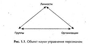 Управление персоналом — это комплексная прикладная наука об организационно-экономических, административно-управленческих, технологических, правовых, групповых и личностных факторах, способах и методах воздействия на персонал предприятия для повышения эффективности в достижении целей организации. Объектом этой науки являются личности и общности (формальные и неформальные группы, профессионально-квалификационные и социальные группы, коллективы и организация в целом)