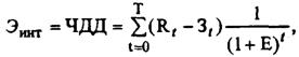 Чистый дисконтированный доход (ЧДД), т.е. Э инт определяется как сумма текущих эффектов за весь расчетный период, приведенная к начальному шагу, или как превышение интегральных результатов над интегральными затратами и рассчитывается по формуле: