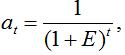 Приведение величин затрат и их результатов осуществляется путем умножения их на коэффициент дисконтирования (аt), определяемый для постоянной нормы дисконта Е по формуле: