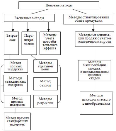 Ценовые методы, используемые в современной практике, взаимосвязаны и формируют таким образом, систему методов ценообразования. Система этих методов схематично представлена на рисунке.