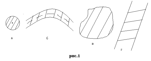 в) площадные (рис.1.в), положение которых определяется линией их контуров