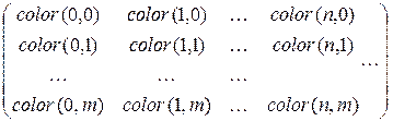 Модель экрана представлена на рисунке 4. Значение двумерного атрибута color в различных точках растра разное. Его значение можно представить матрицей следующего вида: