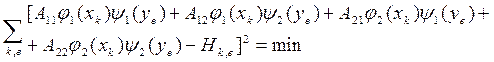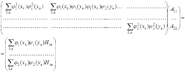 Если стандартные полиномы заданы, то значения коэффициентов Аij следует найти. Их находят по методу наименьших квадратов на основе следующей минимизации