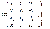 Это условие того, что высоты Н являются линейными комбинациями Х, У, 1 т.е. справедливо равенство H=a+bx+ey