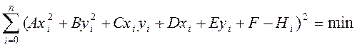 Для определения коэффициентов В и Сj решается система уравнений (14) с известными высотами, число которых определяет размерность системы.