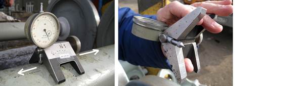 Для проведения замеров: установить прибор на неповреждённом участке оси, выставить вращением циферблата показания стрелочного индикатора на “0”, далее переместить прибор на риску, произвести замер глубины риски по отклонению стрелочного индикатора