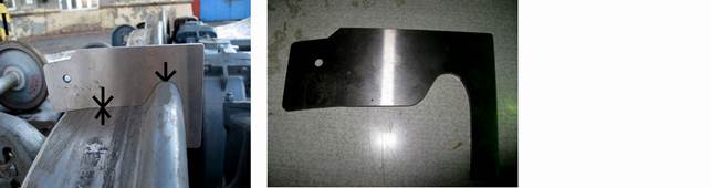 Применяется для проверки максимального профильного шаблона (контршаблон имеет профиль соответствующий расчётному профилю поверхности катания колеса). При сведении шаблона и контршаблона (как показано выше на фото) их профили должны плотно соединиться и не иметь зазора.