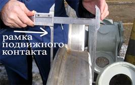 наружной грани колеса со стороны буксы, далее плавным движением подвести рамку подвижного контакта к внутренней грани колеса и по измерительной шкале определить ширину бандажа данного колеса.