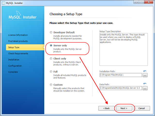 Для Mantis не треба нічого зайвого, поэтому Server only. Можна встановити, або змінити шляхи встановлення програми.
