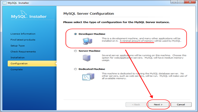 Обираємо скільки пам’яті будет використовувати MySQL на комп’ютері. Т.як. встановлюємо не на сервер, а на власну рабочу станцію, то я хочу щоб MySQL використовував мінімальну кількість пам’ятs.