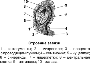 В семязачатке происходят мегаспорогенез, мегагаметогенез и процесс оплодотворения. После оплодотворения (реже без него) из семязачатка формируется семя.