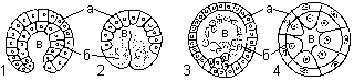 Типы гаструл: 1 — инвагинационная; 2 — эпиболическая; 3 — иммиграционная; 4 — деламинационная;
