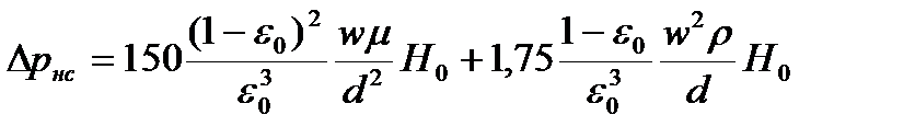 С учетом вышеперечисленного на основании уравнения Дарси – Вейсбаха была получена формула Эргана для определения гидравлического сопротивления неподвижного слоя (НС) д.м. в виде