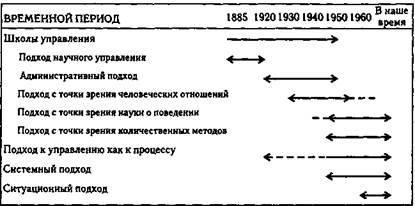 ния («классическая школа»), человеческих отношений и поведенческих наук, а также школа количественных методов управления. Три других подхода, также имеющих исторический интерес, более важны для характеристики современного состояния науки об управлении. Общая картина эволюции управления как науки может быть проиллюстрирована следующим образом (рис. 1).