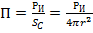 При своем распространении в пространстве электромагнитные волны переносят энергию, выделяемую в месте излучения источником переменного тока. Соответствующая этой энергии мощность РЛ (энергия, переносимая полем за единицу времени) называется мощностью излучения. Предположим теоретически, что источник излучения является точечным. В этом случае электромагнитная волна излучается источником равномерно во всех направлениях, создавая воображаемую поверхность сферы, и во всех точках пространства, равноудаленных от источника, т. е. лежащих на поверхности воображаемой сферы, фаза колебаний одинакова. Плотность потока мощности, или интенсивность излучения (мощность, проходящая через единицу площади поверхности сферы, Вт/м2), равна: