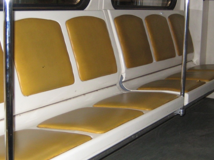 Салоны вагонов оборудованы «антивандальными» сиденьями из стеклопластика с мягкими вставками. В секциях салона между дверными проемами вдоль боковых стенок с обеих сторон установлены сиденья на девять посадочных мест - три трехместных сиденья в сборе, установленные в ряд. Между дверными проемами и стенками (торцевыми и перехода), также вдоль боковых стенок, установлены сиденья на три места - одно сиденье в сборе.
