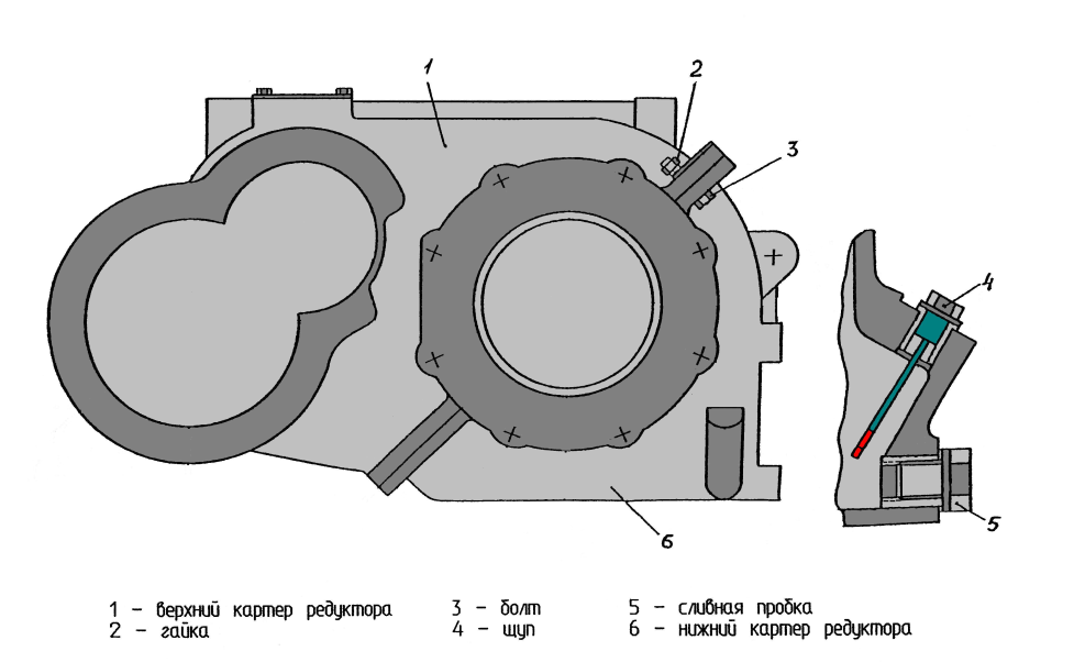 При осмотре проверить состояние и крепление редуктора деталей узлов подвески, отсутствие трещин на корпусе редуктора, утечек масла через уплотнения корпуса редуктора, из под крышек подшипников, стаканов и сапуна.