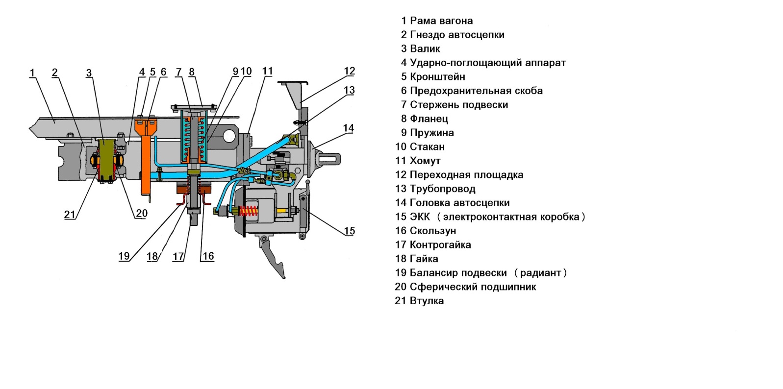 Автосцепки вагонов комбинированные предназначены для механического сцепления вагонов между собой, а также межвагонного соединения поездных проводов цепей управления и воздухопроводов НМ и ТМ.