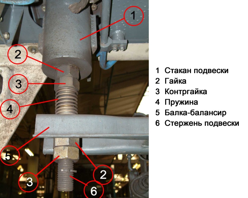 Установка автосцепки на вагоне производится с помощью специальных подвесок. Каждая подвеска состоит из двух амортизаторов, в которые входят стержень, две пружины, балансир и гайки. Верхняя часть амортизатора крепится болтами к раме вагона. Автосцепка скользуном опирается на балансир.