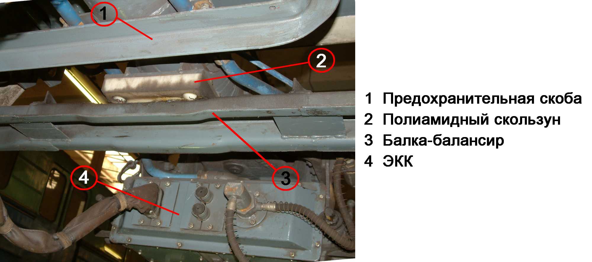 В случае обрыва одного или двух штырей подвески свободная автосцепка концевого вагона опустится на предохранительную П-образную скобу, выполненную из уголка с размерами 50х50х5 мм. Скобу укрепляют на раме кузова четырьмя болтами. Для ограничения поворота свободной автосцепки и предотвращения удара о предохранительную скобу к балансиру приваривают упоры.