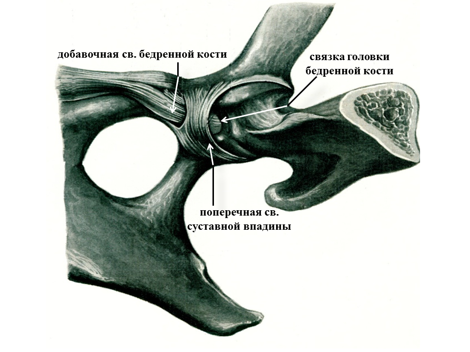 3. Поперечная связка суставной впадины – lig. transversum acetabuli – соединяет края вырезки впадины.
