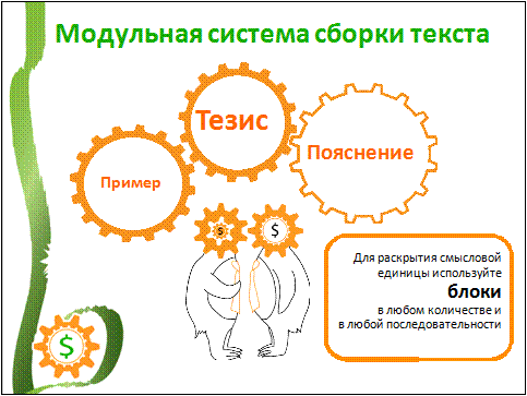 Для изложения информации в основной части можно использовать модульную систему построения текста вашего доклада.