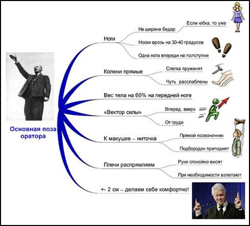 - Воспользуйтесь ментальной картой и отработайте позу оратора.